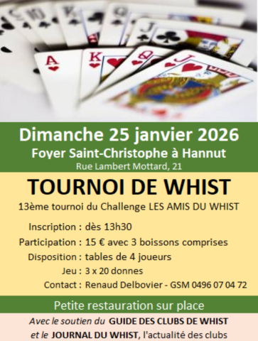 - Organisateur : Whist Hainaut